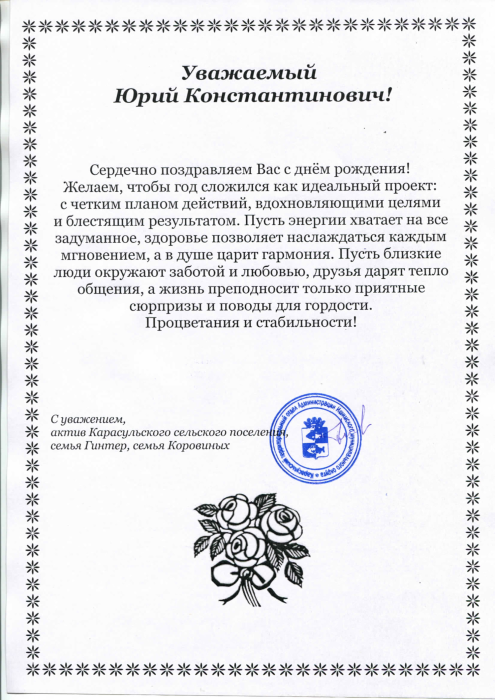 С уважением, актив Карасульского сельского поселения, семья Гинтер, семья Коровиных